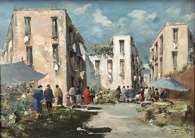 Lot 205Giuseppe Elettro (20th Century Italian) oil on canvas - Continental street scene, signed, 50cm x 70cm, framed.Provenance: Cooling Galleries, 92 New Bond Street, London, W1.