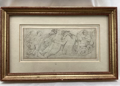 Lot 257Anthony Devis (1729-1816/17) pencil and wash, figure and dog in a landscape, signed with initial, 19 x 13cm, glazed frame