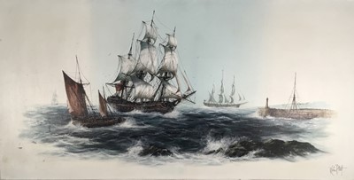 Lot 269Kevin Platt (b. 1945) oil on canvas Marine scene and another and a small watercolour marine scene