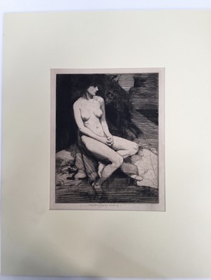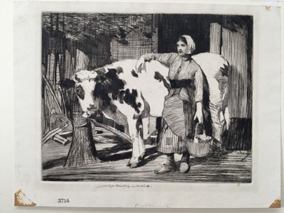 Lot 211William Lee Hankey (1869-1952) etching, the milkmaid, the plate 20 x 25cm, together with two further figural etchings by the same hand, all mounted. (3)