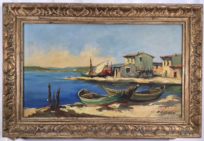 Lot 196Pierre Carron (1932-2022) oil on canvas - Mediterranean landscape, signed, 34cm x 58cm, framed