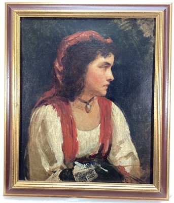 Lot 197Continental school oil on canvas - Gypsy girl, 44.5cm x 36.5cm, in gilt frame