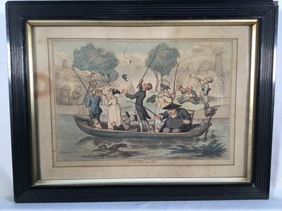 Lot 261Five Georgian coloured engravings depicting humorous fishing scenes and coloured engraving Master of Blankney hounds