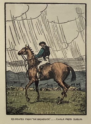 Lot 195Jack Butler Yeats - 'An Old Slave', 20th century hand-coloured woodcut, published by the Cuala Press, 32cm x 21.5cm, within an ebonized wood frame