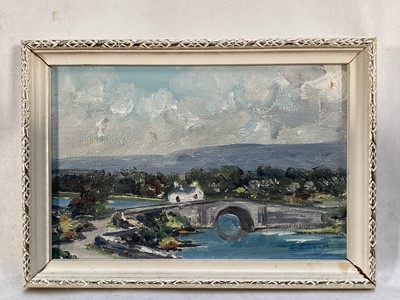 Lot 238Irish School 20th century, oils on board, Lackagh Bridge Co. Donegal and another Irish view, a pair in painted frames. Each 9.5 x 15cm. (2)