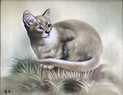 Lot 240Bernard Harris, oil on canvas, Burmese Cat, initialled and signed verso, in wooden frame. 31 x 40cm.