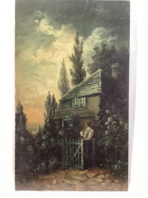Lot 249English School 19th century, oil on mahogany panel, "Thrice Has She Been To The Gate", inscribed verso, unframed. 30 x 18cm.