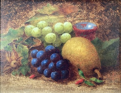 Lot 251English School 19th century, oil on board, still life of fruit, oil on board, in gilt frame. 18 x 24cm.