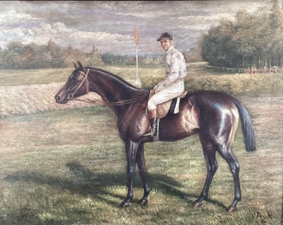 Lot 252V. Pryde, oil on canvas board, bay hunter with jockey up, signed, in gilt frame. 31 x 40cm.