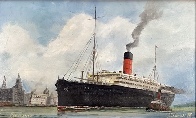 Lot 254F. Czolowski, Ocean liner Franconia entering harbour, signed, inscribed and dated '78, in wooden frame. 29 x 49cm.
