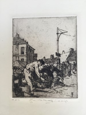 Lot 208William Lee Hankey (1869-1952) etching, Market traders, signed and with blind stamp, 13 x 10cm, and another by the same hand