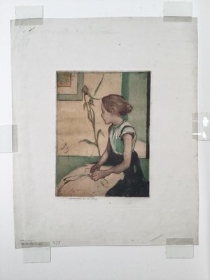 Lot 209William Lee Hankey (1869-1952) etching in colours, seated girl, signed and with blind stamp, plate 20 x 15cm