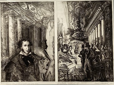 Lot 216Russian School, late 20th century etching, indistinctly signed and inscribed and dated 1988, two plates each 50 x 33cm, in glazed frame