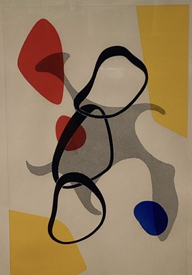 Lot 217Follower of Alexander Calder, etching, abstract shapes, signed and numbered 2/15, plate 39 x 58cm, glazed frame