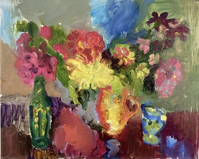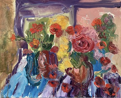 Lot 222Annelise Firth (b.1961) oil on canvas - Abstract of flowers, signed verso, unframed