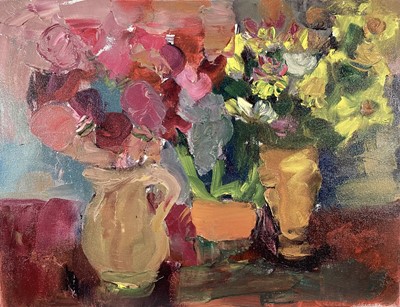 Lot 227Annelise Firth (b.1961) oil on canvas - 'Spring Arrangement', signed titled and dated 2024 verso, 35cm x 45cm, unframed