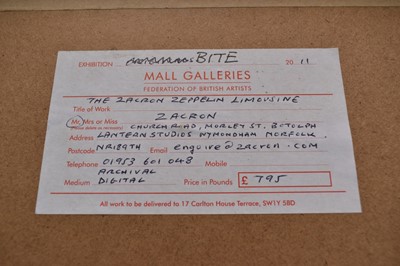 Richard Drew, known as Zacron (British, 1943-2012) archival fine art print - The Zacron Zeppelin limousine, signed and numbered 1/200, 67 x 52cm glazed frame