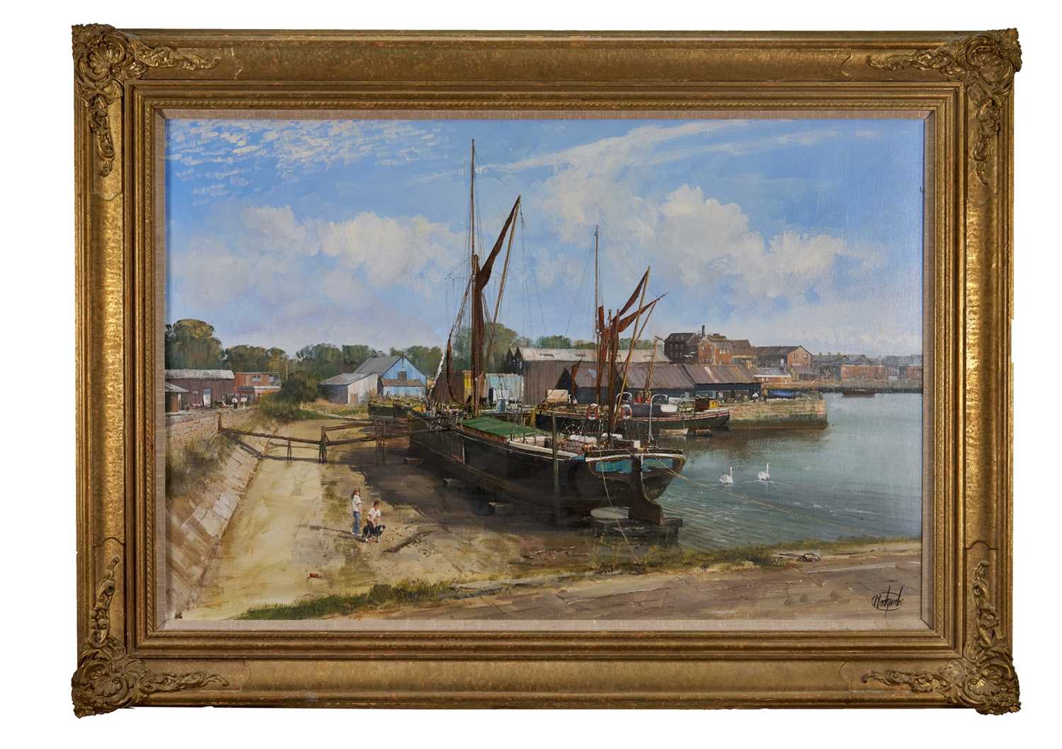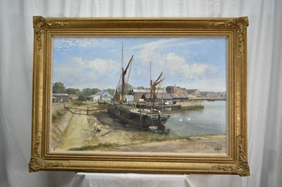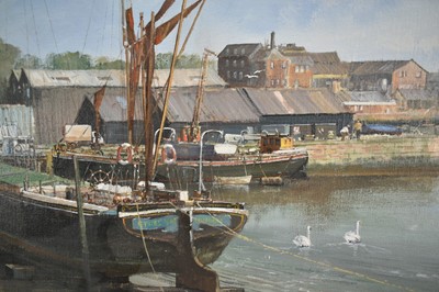 *Clive Madgwick (1939-2005) oil on canvas - Ethel May, Mistley Docks, 1987, signed, 61cm x 91cm, in gilt frame