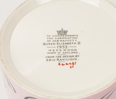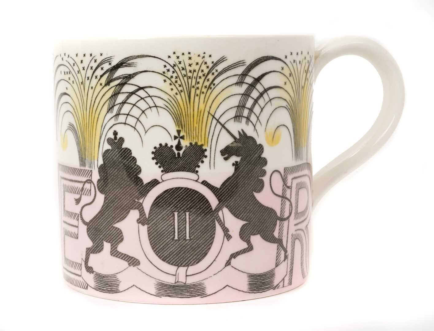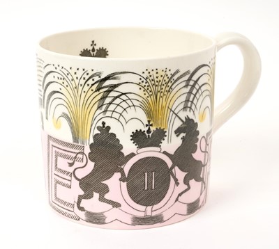 Eric Ravilious for Wedgwood- The Coronation of H.M.Queen Elizabeth II 1953, scarce Wedgwood Souvenir mug with stylised Royal Arms, ER and 1953, marks to base 10.4cm high, 10.6cm diameter