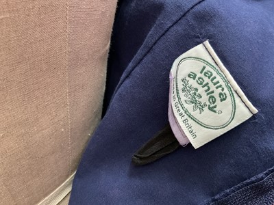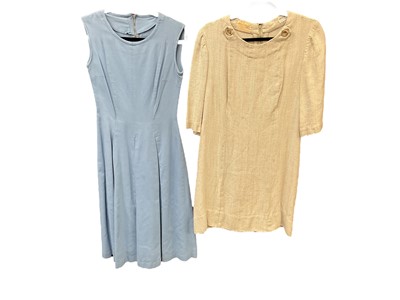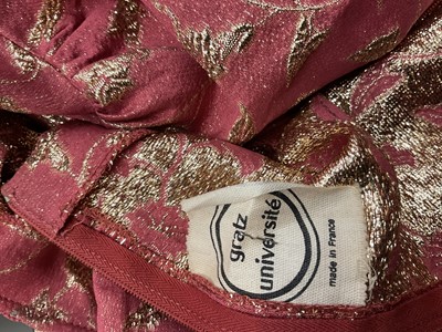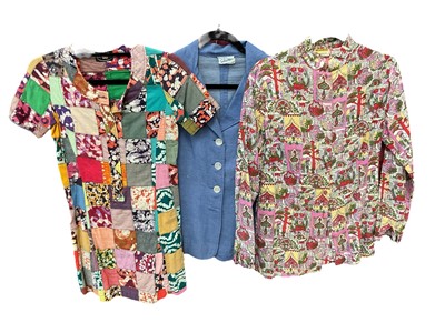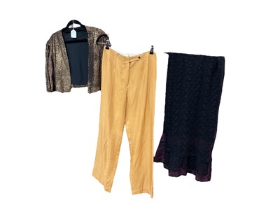 1960's clothing including French patchwork mini dress, silk trousers, lurex maxi, gold lurex bolero, 1980's Laura Ashley blue cotton dress 'Made in Great Britain' and other items.