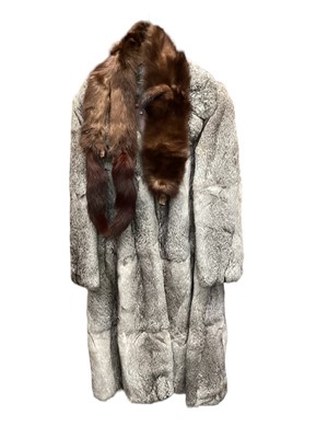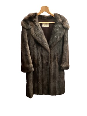 Silver rabbit fur coat, musquash fur coat with receipt dated 1960, opposum fur coat with receipt dated 1946, simulated Astra Furs coat with labels, a musquash fur stole with receipt dated 1959, a fox stole and a silver mink stole.