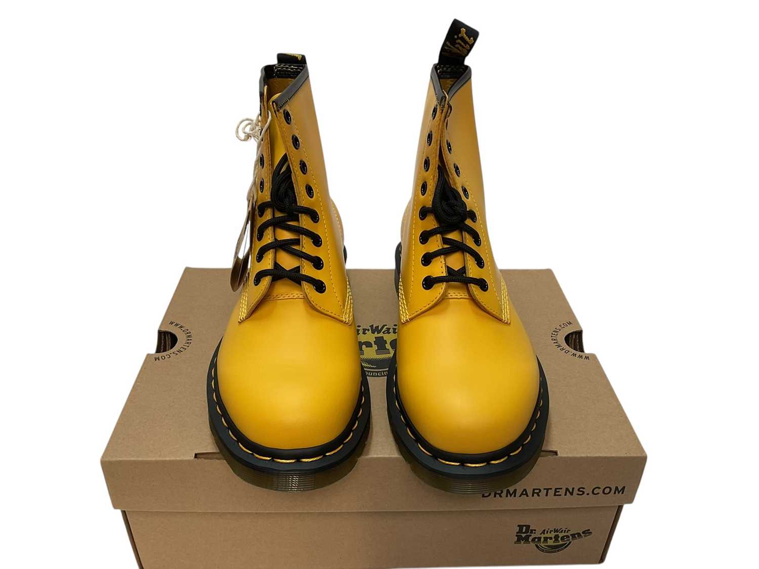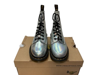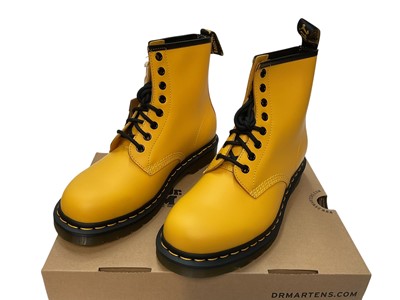 Two pairs of Dr Martens boots Silver Lazer Reflective Metallic and Smooth Yellow. Both brand new, boxed and size 6 plus a yellow mini cross-body satchel new.
