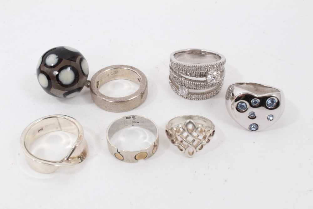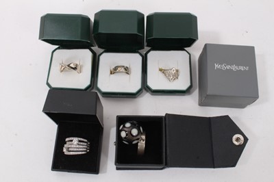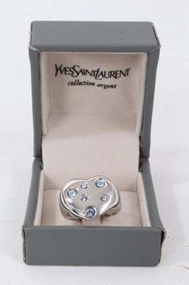 Yves Saint Laurent silver heart shaped gem set dress ring in orignal box, size N, together with five other silver rings (6)