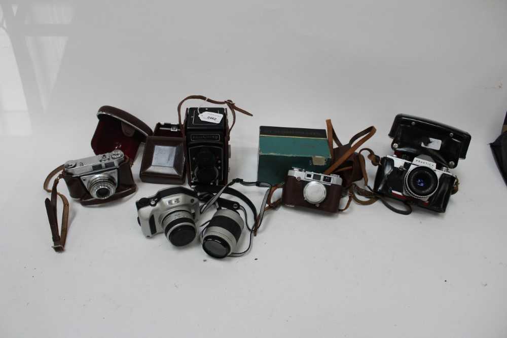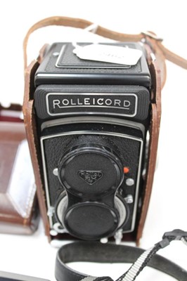Rolleicord Vb twin lens reflex camera, with original lens cap and leather case, together with a Pal M4 with leather case and original box, a Kodak Retinette 1a, a Praktica LTL, and a Nikon Pronea S