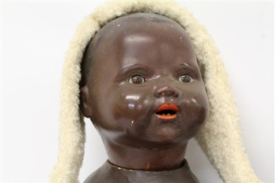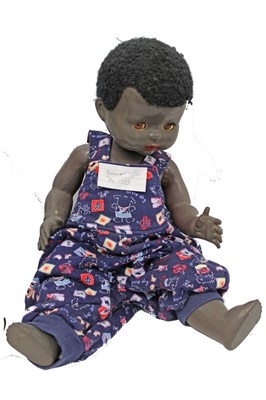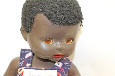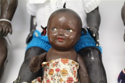 Two hard plastic black dolls by Pedigree, German composite black doll and one other smaller black doll (4)