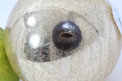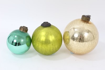 Three antique witches balls, each with suspension hoops, the largest approximately 15cm diameter