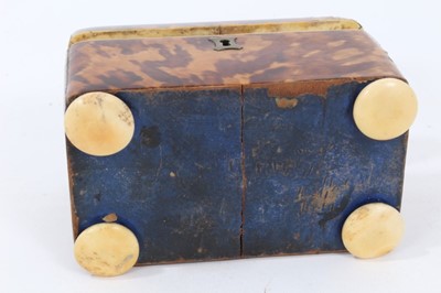 Regency blond tortoiseshell tea caddy, domed form, raised on squat ivory feet, 13cm long