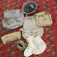 Lot 573 - Signalling lamp, dated 1940, goggles, anti-gas...