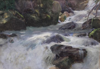 Lot 948 - Solomon J Solomon - watercolour, Waterfall, Haute Savoy, together with original frame. Provenance: By family descent from the artist