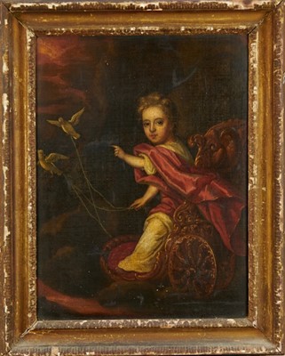 Lot 959 - 18th century oil on canvas - child in a chariot, 49cm x 36cm, in gilt frame