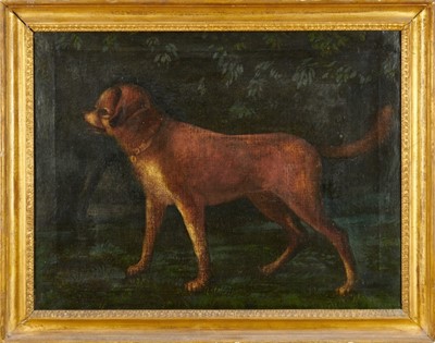 Lot 960 - English School, late 18th/early 19th century, oil on canvas - a favourite terrier, inscribed verso, 45cm x 59cm, in gilt frame