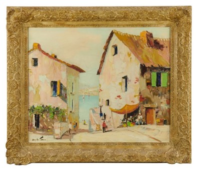 Lot 979 - *Cecil Rochfort D’Oyly-John (1906-1993), oil on canvas, Figures in a Mediterranean street, signed, inscribed verso, 42cm x 52cm, framed