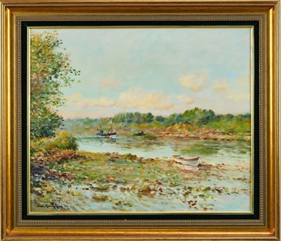 Lot 980 - Jean Kervorkian (b 1933) oil on canvas, River scene