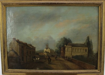 Lot 965 - English School, 19th century, oil on canvas - Town View, 31cm x 45cm, in gilt frame