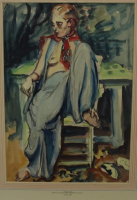 Lot 949 - Ernest Stern (1876-1954) watercolour - female performer, 49cm x 34cm, together with another work by the same hand, a landscape, 36cm x 44cm, both initialled, in glazed gilt frames