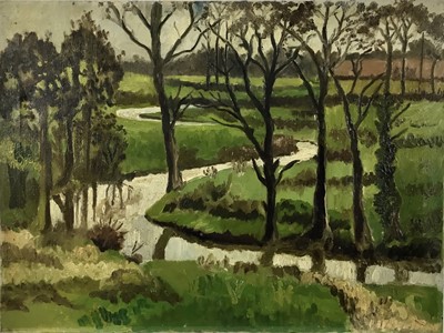 Lot 285 - Sylvia J. Mackinnnon, mid 20th century, oil on canvas - Suffolk Landscape, unframed