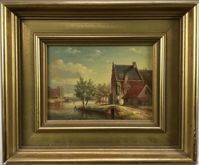 Lot 253 - Ronald Meilof (1953-2016) oil on panel, Dutch canal scene, signed, 12 x 16cm, framed