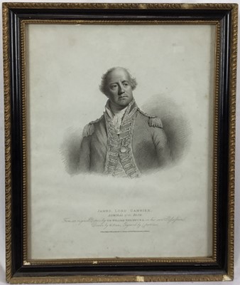 Lot 266 - Early 19th century stipple engraving, portrait of James, Lord Gambier, Admiral of the Blue, published 1810, in glazed gilt and ebonised frame, 42.5cm x 35cm overall