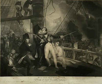 Lot 269 - Of Nelson interest - Rare early 19th century stipple engraving by Robert Cooper after W. M. Craig, Battle of Trafalgar, Death of Lord Viscount Nelson, published 1806 by Edward Orme, 52cm x 63cm
