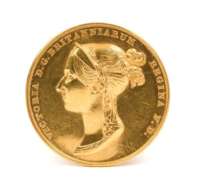 Lot 71 - H.M. Queen Victoria Coronation 1838 Gold Medal by B. Pistrucci, struck with bust of the Queen, 'Victoria D.G. Britanniarum Regina F.D.' and to the reverse Victoria on her throne being offered the...