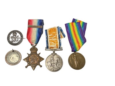 Lot 59 - First World War trio comprising 1914 'Mons' Star with 5th Aug. - 22nd. Nov. 1914 clasp named to CH. 14968 PTE. G. E. Edgecock. R. M. Brigade., War and Victory medals