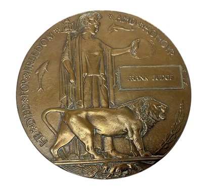 Lot 56 - First World War Memorial (Death) plaque named to Frank Judge