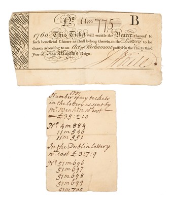 Lot 78 - Mrs Mary Wynyard, wife of Colonel John Wynyard, 17th Regiment of Foot, a fascinating group of Mid to late 18th century correspondence including a rare 1760 Lottery ticket, and a handwritten not...