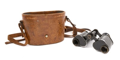 Lot 50 - Pair of First World War Officer's private purchase binoculars in black painted finish, engraved Carl Zeiss Zena D.R.P., in brown leather case. Provenance: formerly the property of Brigadi...