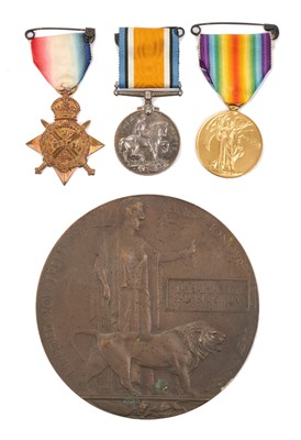 Lot 55 - First World War Memorial (Death) plaque named to Lional Henry Salvin Bowlby, together with trio comprising 1914 'Mons' Star, named to Lieut. L. H. S. Bowlby. 2/DNS., War and Victory medals named...
