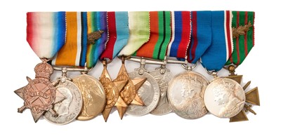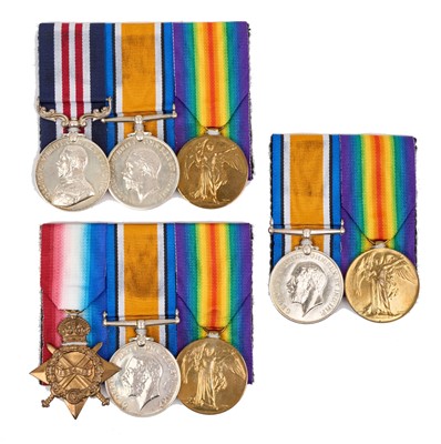 Lot 60 - First World War family medal groups to the brothers of the Adcock family comprising First World War Military medal (M.M.) named to 24022 PTE. A. H. Adcock. 7/Suff. R. War and Victory medals name...